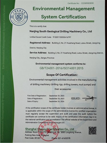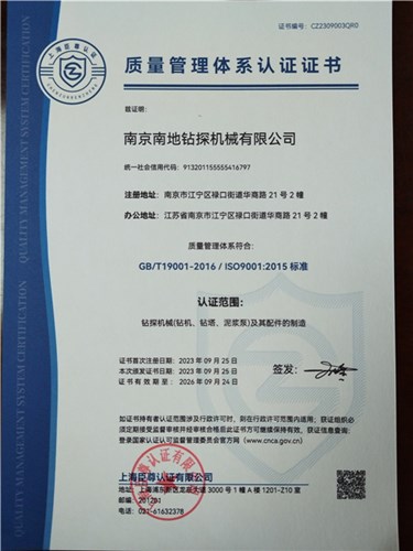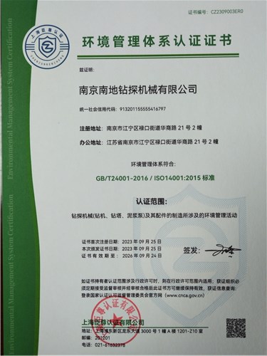 企業(yè)通過ISO9001:2015質(zhì)量管理體系認證、ISO14001:2015環(huán)境管理體系認證、ISO45001:2018職業(yè)健康安全管理體系認證。