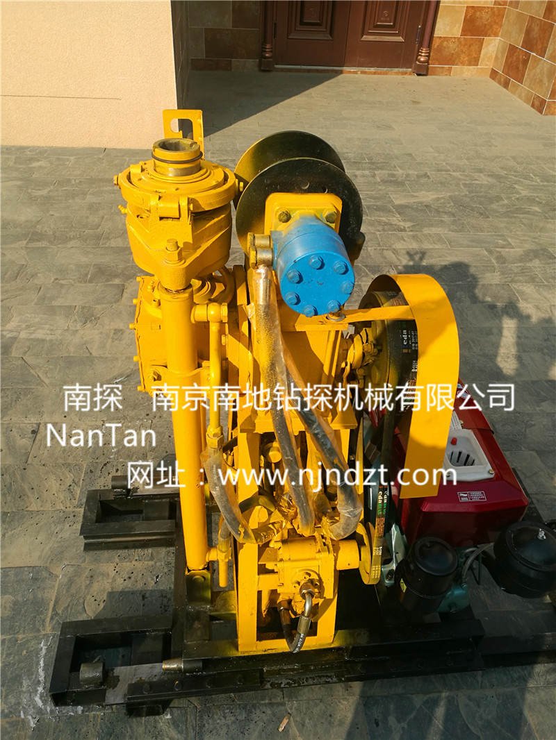 NTQZ-50B型鉆機是一種具有油壓給進的輕便鉆機,配置移位底座、液壓卷揚機、4.5米高三角架鉆塔。額定鉆孔深度50米,最大開孔直徑允許為110mm,終孔直徑為75mm,孔徑46-200mm配套鉆進深度根據(jù)地層情況而定。既可以旋轉(zhuǎn)、 沖擊鉆進取土取芯樣,也可以旋轉(zhuǎn)鉆進不取心鉆孔,比如鉆孔灌漿、引孔等。
